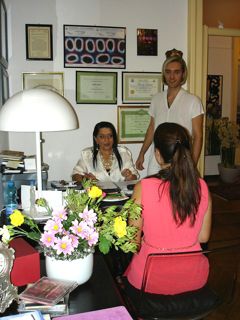 Dopo aver accolto il paziente nel nostro confortevole studio, si procede con la rilevazione del suo stato di salute. Supportata dalla consolidata esperienza pranoterapica e utilizzando la radiestesia medicale in sinergia alle doti di sensitiva, viene definita la paradiagnosi del paziente. Lo stato generale psico-fisico rilevato viene quindi riportato in una scheda personale aggiornata, successivamente, con i progressi ottenuti dal paziente nel corso della terapia.
